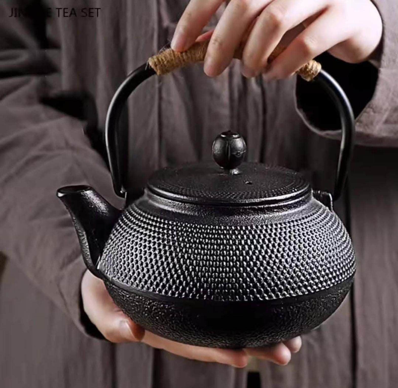 This 900ml cast iron Japanese tetsubin teapot is a durable, enamel-coated kettle designed for brewing tea evenly while preserving traditional style and heat retention.