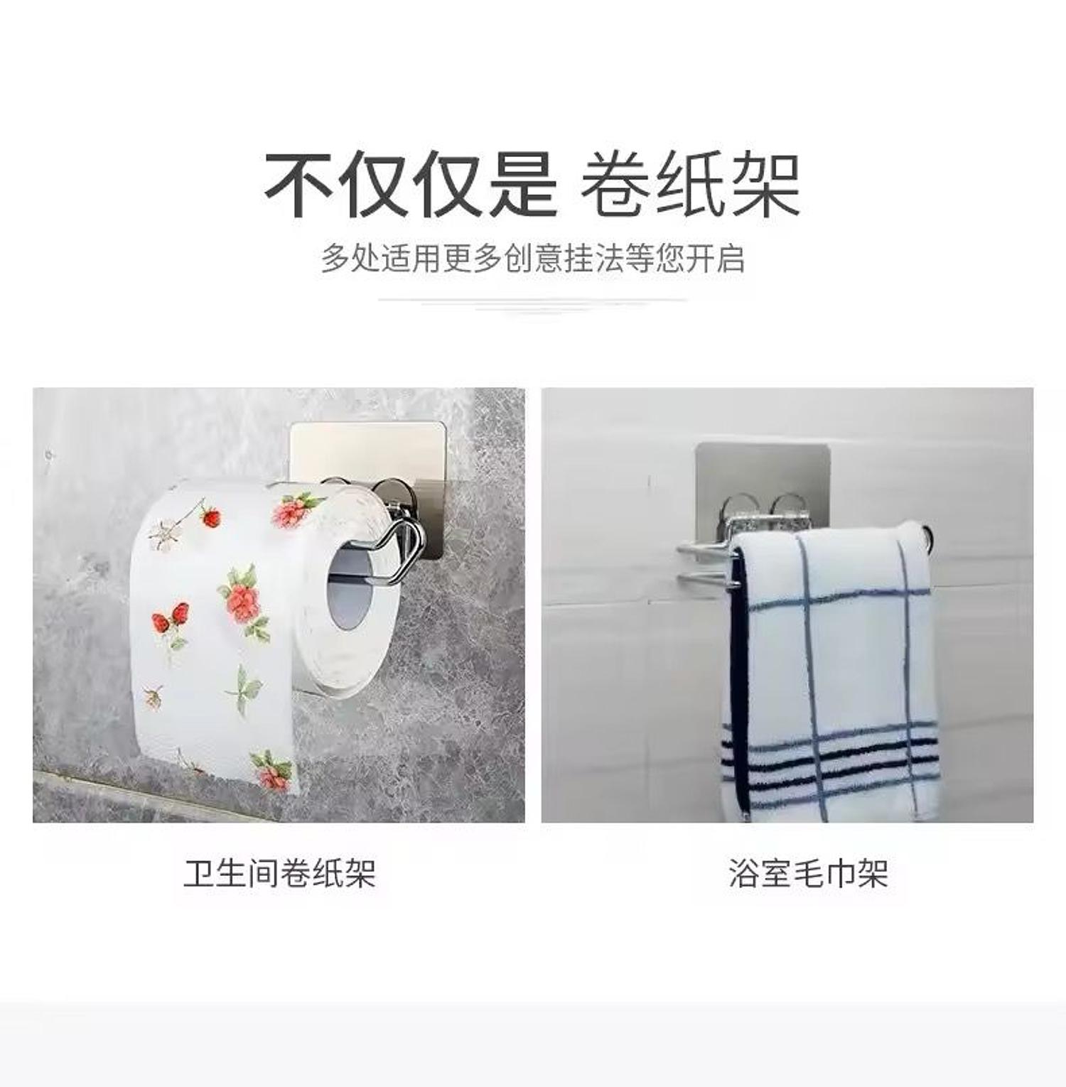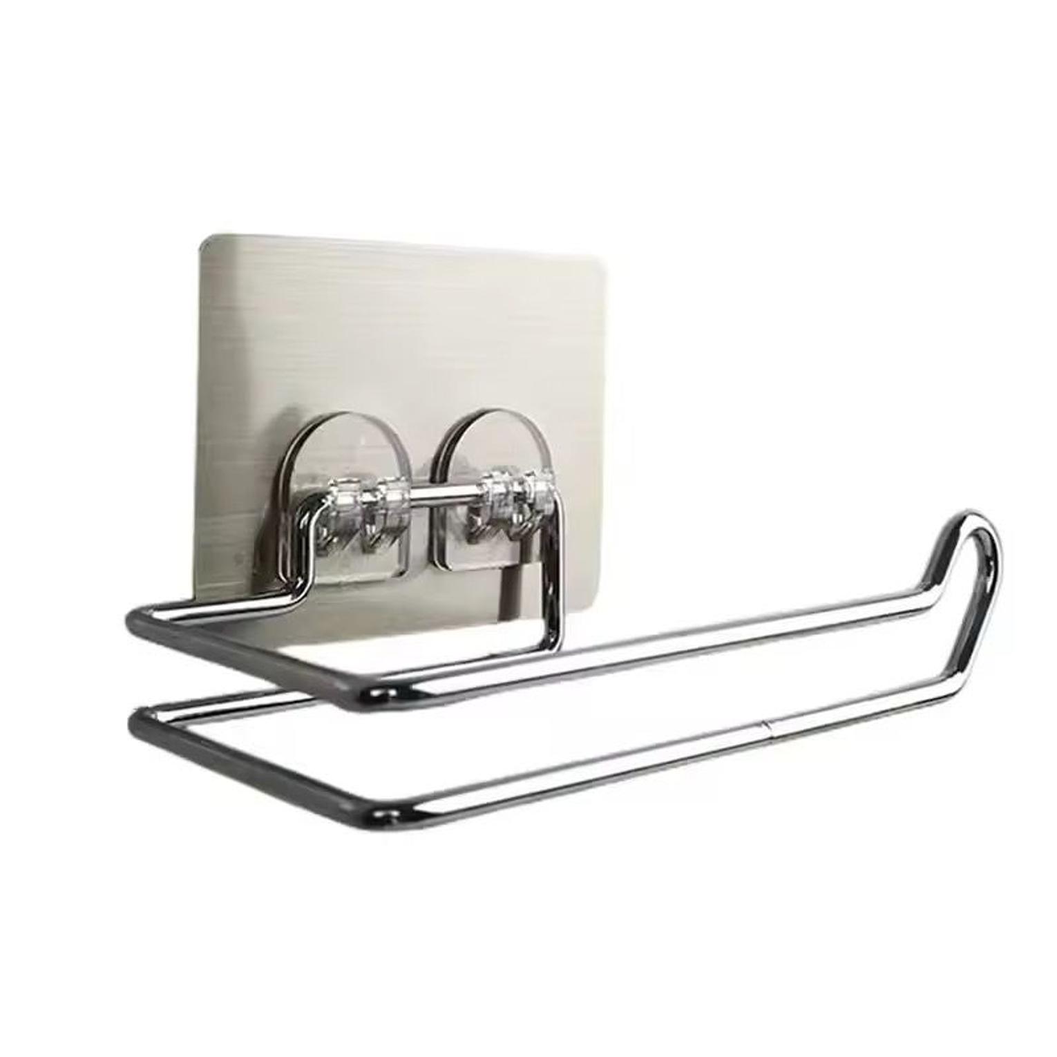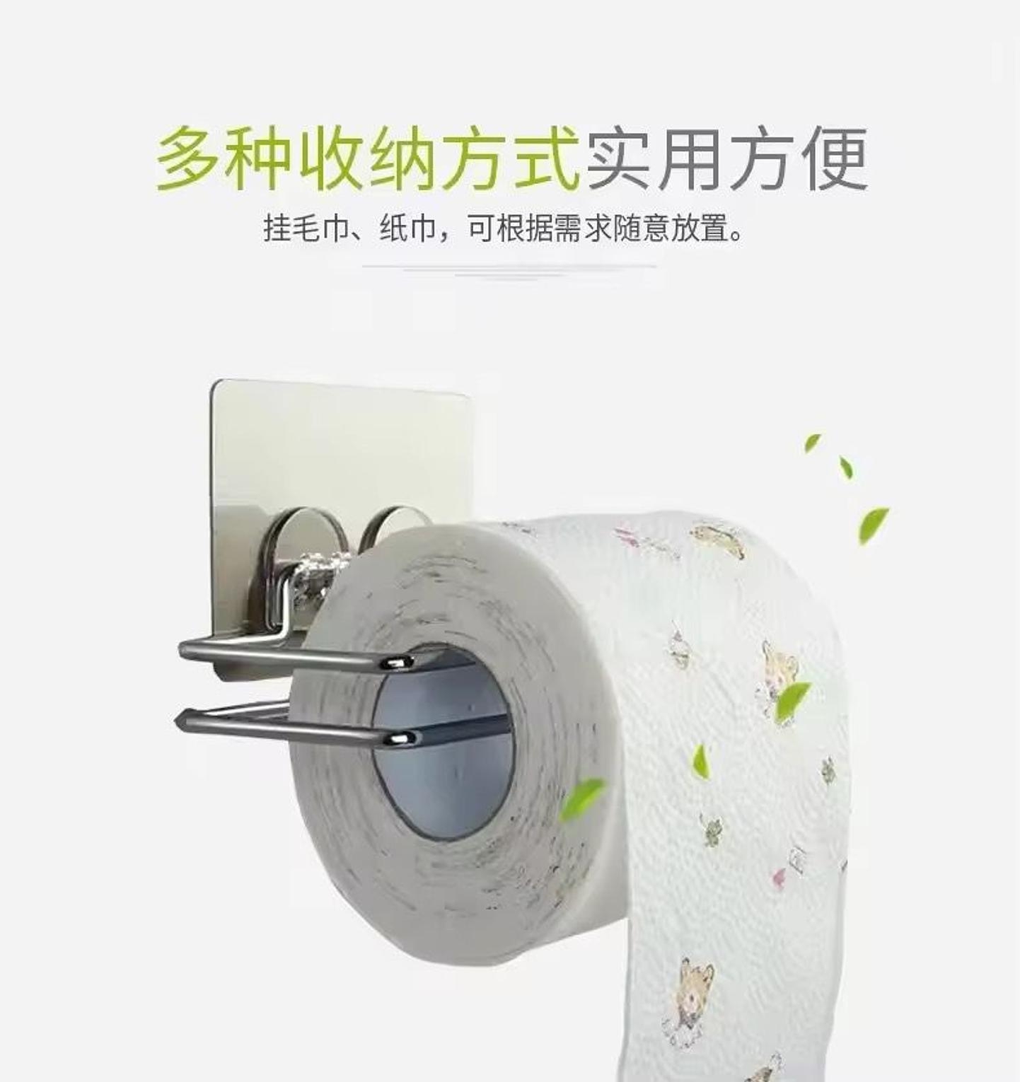 A rust-resistant stainless steel paper holder with strong self-adhesive mounting, perfect for bathrooms, restrooms, and hotel use.